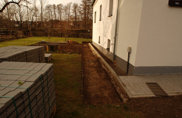 hinter dem Haus vor den Pflasterarbeiten im März |